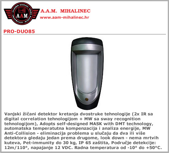 Vanjski žičani detektor kretanja dvostruke tehnologije